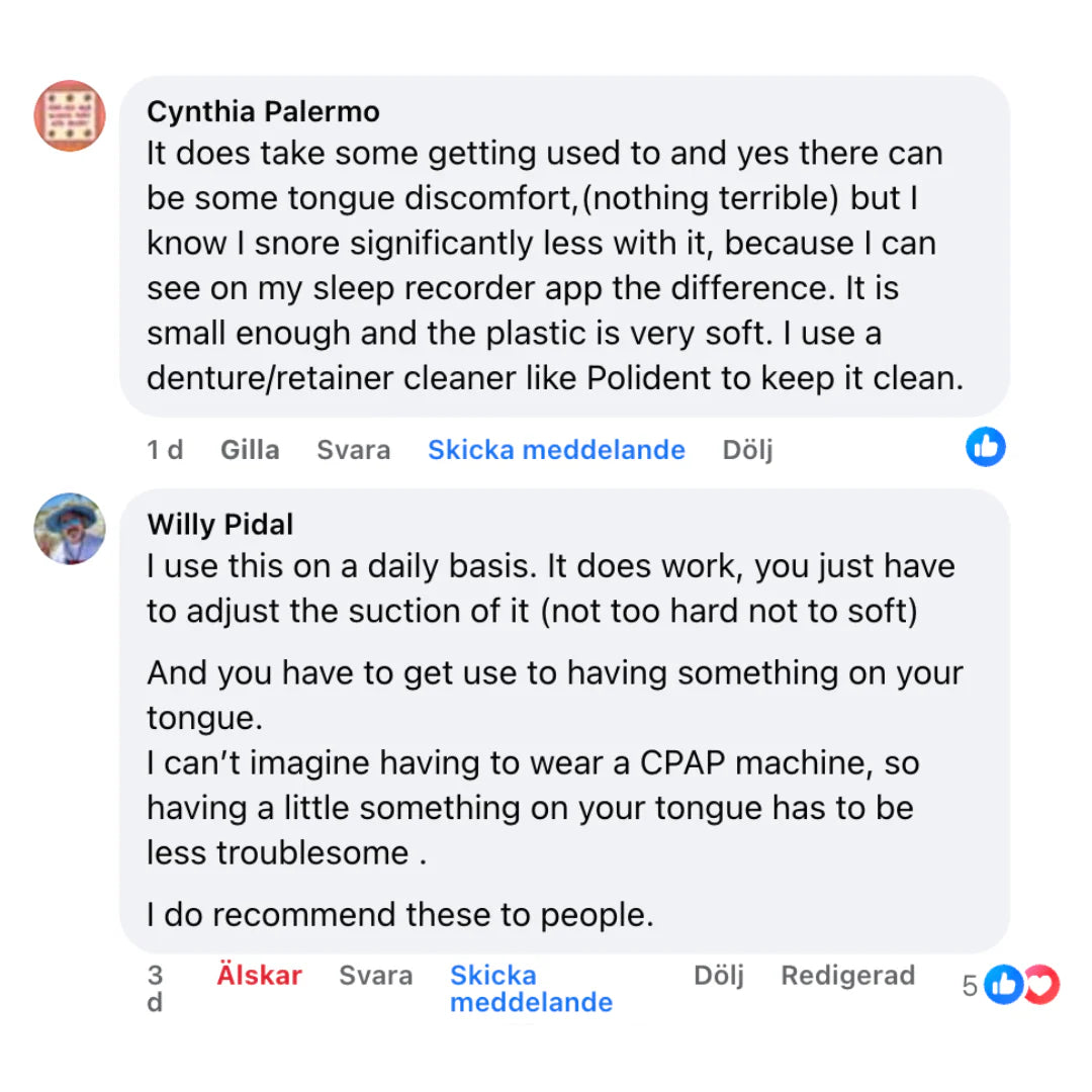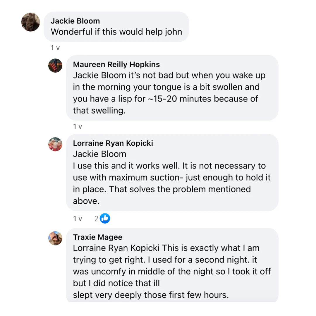 By preventing it from falling back and blocking your airway, airflow stays smooth and uninterrupted. Simply place it on your tongue, apply light suction, and let it work overnight.